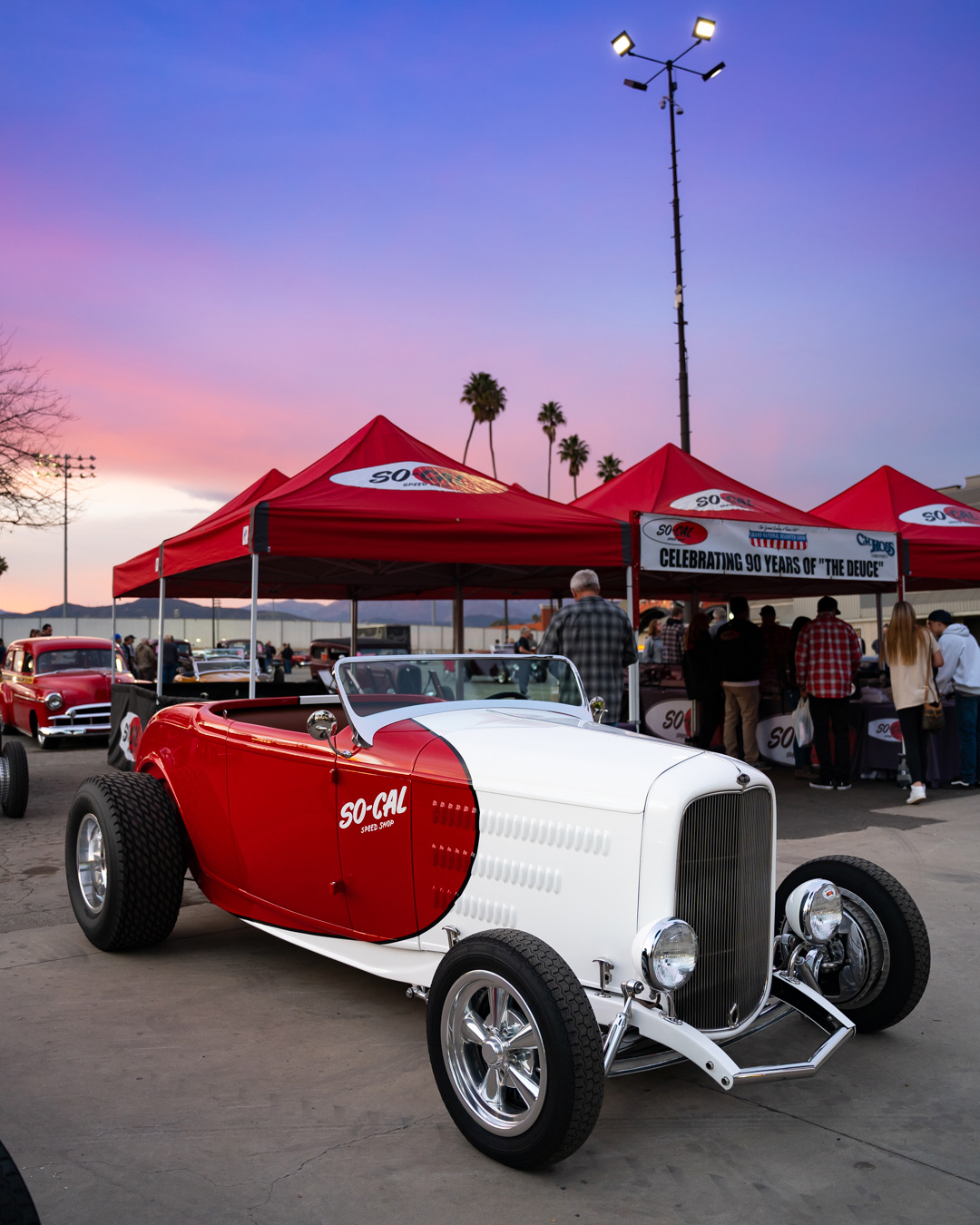 The award-winning So-Cal Speed Shops roadster is a premier build by Pete Chapouris III, Jimmy Shine, and the So-Cal Speed Shop Team. Built in 2003, it utilizes a Derale Electric Fan for cooling the radiator, a Scoop Cooler for cooling the Power Steering Fluid and a US Motor Works Fuel Pump.