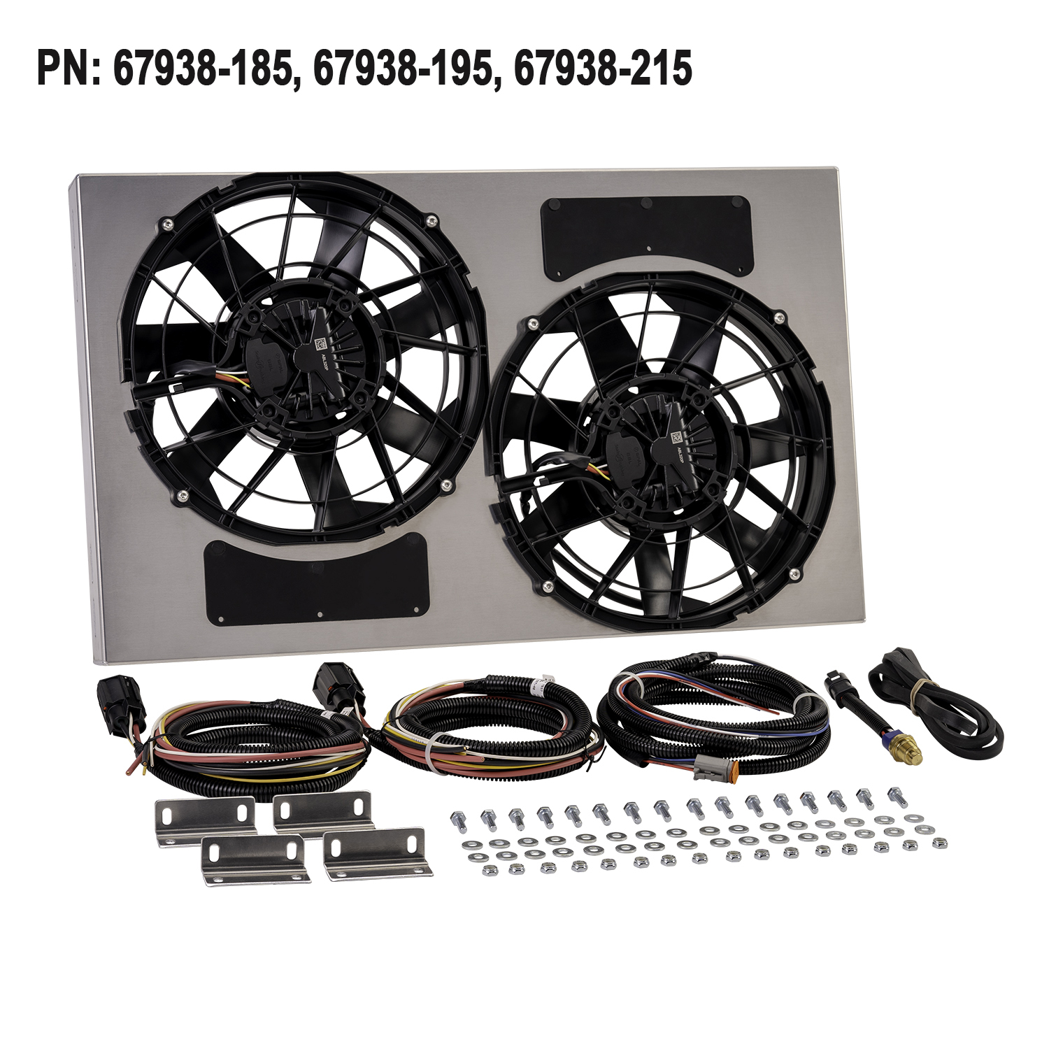 Derale Brushless Powerpacks provide the best Performance when it comes to cooling performance for your engine. Derale’s NEW, high-performing brushless fans with integrated fan controller, combined with their high-performing shrouds is a combination that just can’t be beat. These Derale Powerpack units feature a fully welded aluminum shroud measuring only 2 13/16" in depth and combined with the installed electric fan, the overall thickness is only 3 1/2". The natural, non-finished aluminum shroud gives the user the freedom to polish, anodize, paint, or simply leave it raw to create a truly custom look. The dual 12”, brushless electric fans are some of the most proven and reliable fans in our line-up and are specifically designed to thrive on thick, tight fin radiator cores. Offering a total of 4400 CFM, this dual electric fan assembly generates the most real-world airflow in the smallest package on the market. Don’t forget they also have the built-in PWM Fan Controller with soft start technology. The controller utilizes Pulse Width Modulation to constantly adjust electric fan speeds from 0-100% to maintain 185°F, 195°F or 215°F temperature. This allows electric fans to operate at the percentage needed, instead of 100% all the time. This results in extra-longevity, increasing component life and eliminating amperage spikes.