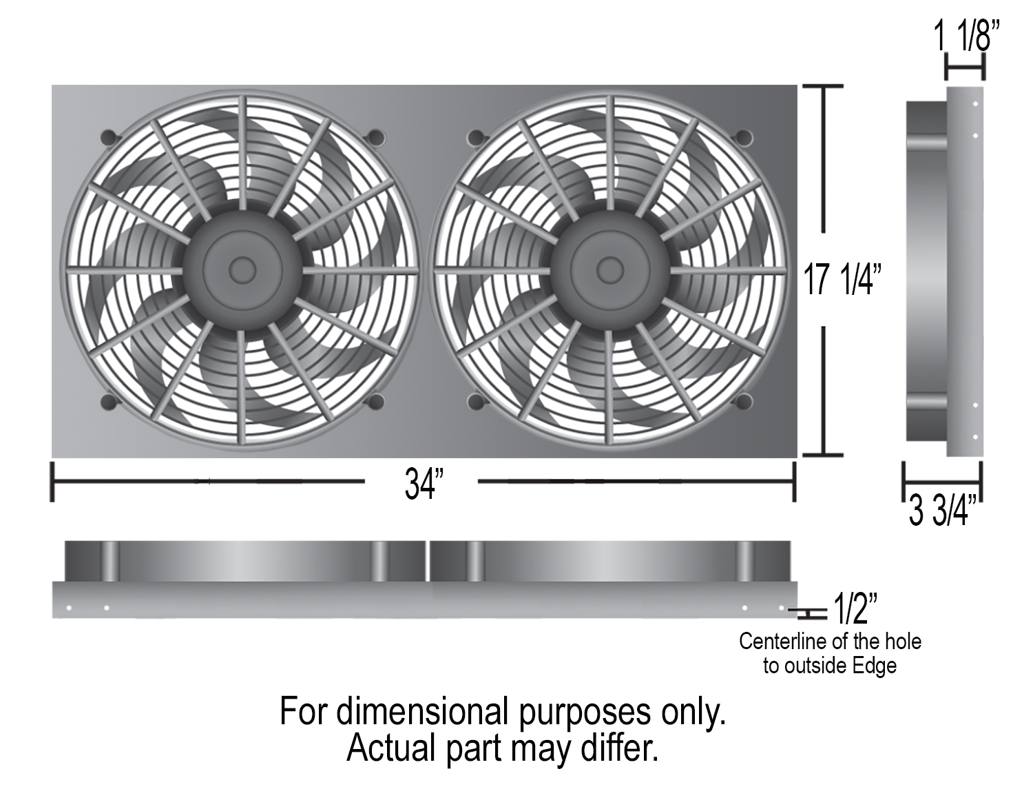 Powerpack - High Output Dual 17'' Electric RAD Fan/Aluminum Shroud Kit - 34''W x 17-1/4''H x 3-3/4''D