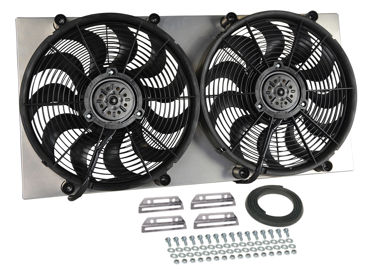 This Dual High Output RAD Fan Powerpack Assembly is part of the HO Aluminum Shrouded Fan Series that is designed with the application in mind. Based on some of the most common radiator core sizes sold today, this unit features an aluminum shroud measuring 34" wide by 17-1/4" top to bottom and is only 3-3/4" in overall depth to offer an adjustable yet precision fit. The natural, non-finished aluminum shroud gives the user the freedom to polish, anodize, paint, or simply leave it raw to create a truly custom look for an affordable price. The dual 17" high output two speed fans are some of the best in our line-up offering 4800 combined CFM when on high speed to create the most airflow possible in a compact size.