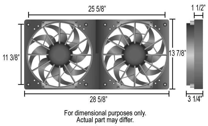 Powerpack - High Output Dual 12'' Electric RAD Fan/Plastic Shroud Kit - 28-5/8''W x 13-7/8''H x 3-1/4''D