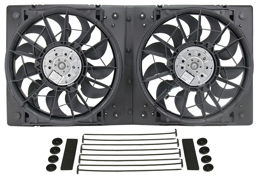 This high-performance primary cooling fan Powerpack kit combines two high output 265 watt Bosch motors with stator flow directors and an OE-quality injection molded fan shroud to produce one serious dual electric fan setup. Designed for puller applications, It's perfect for muscle cars, street rods and heavy-duty trucks, this combination produces 4,000 CFM while each fan draws 24.8 amps. Includes through radiator mounting system.