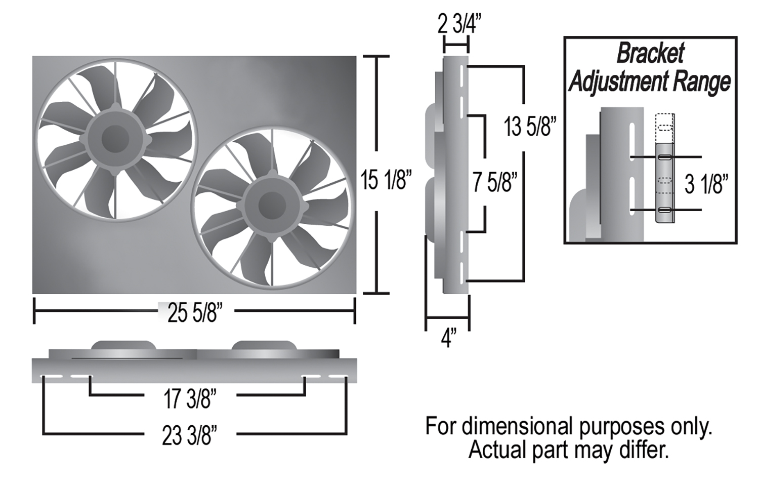 Powerpack - High Output Dual 12'' Electric RAD Fan/Aluminum Shroud with PWM Controller - 25-5/8''W x 15-1/8''H x 4''D