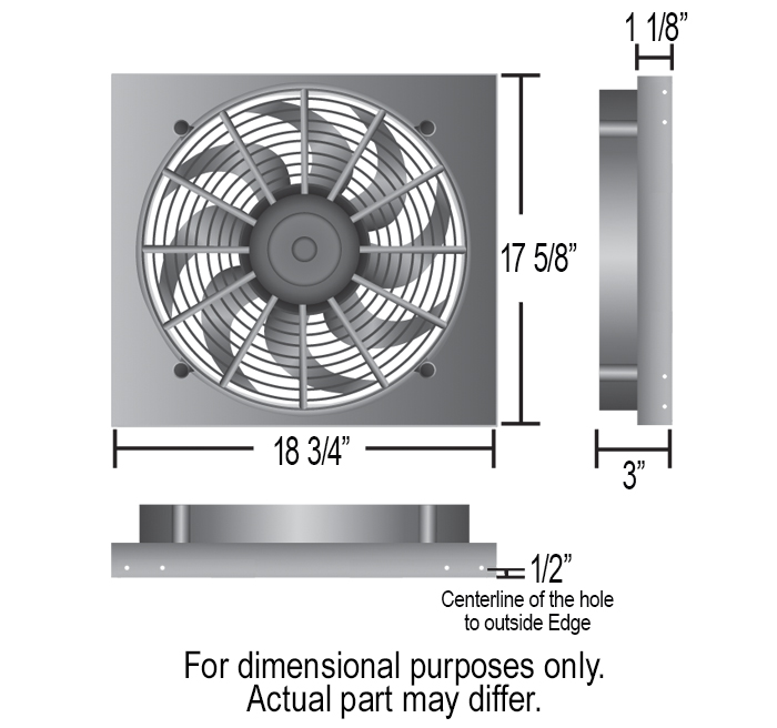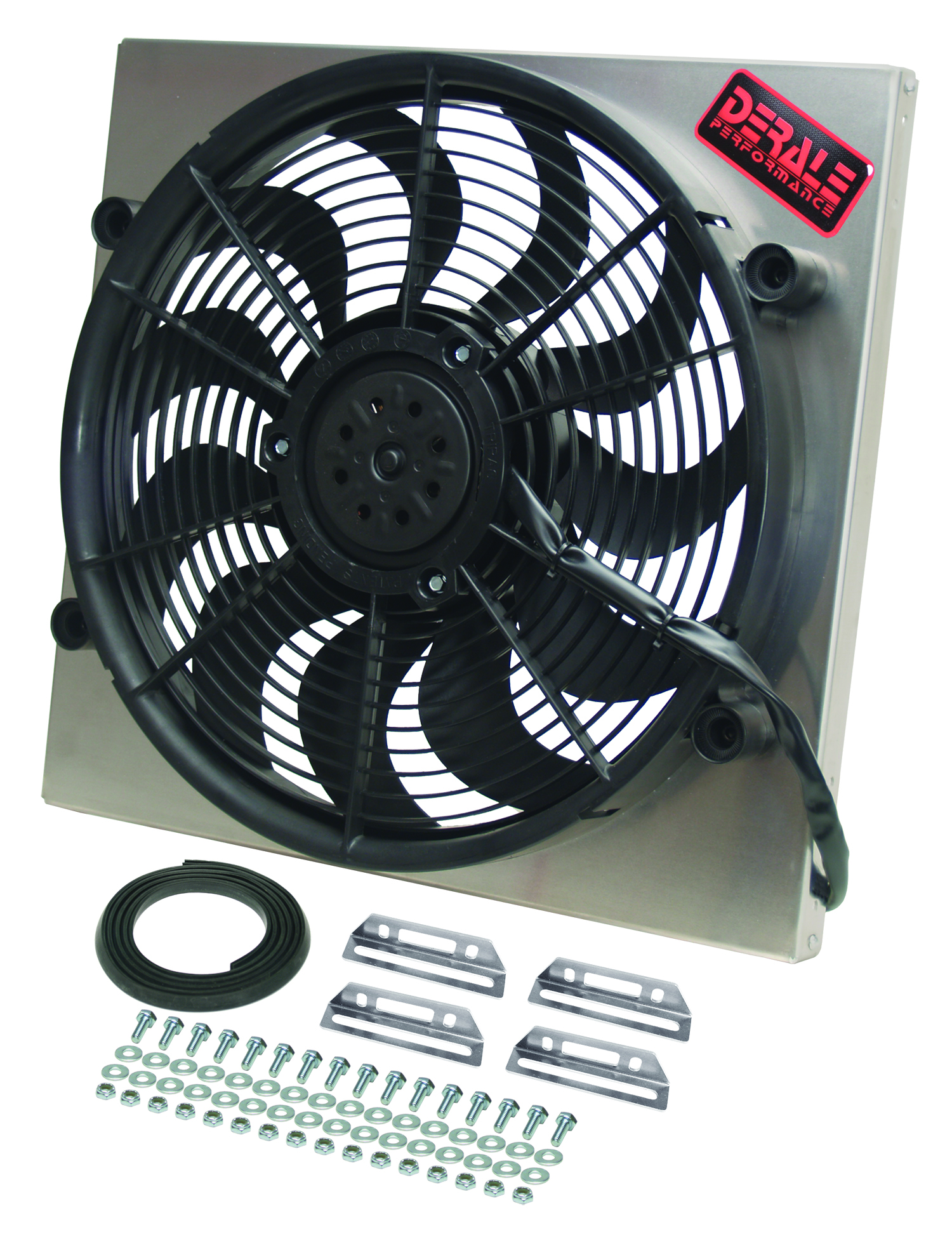 This High Output Single RAD Fan Powerpack is part of the HO Aluminum Shrouded Fan Series designed with popular applications in mind. This assembly measures 18 3/4" wide by 17 5/8" top to bottom and only 3" thick overall to offer an precision fit. The raw aluminum shroud gives the user the freedom to polish, anodize, paint, or simply leave it natural to create a truly custom look for an affordable price. The 17" high output two-speed fan is one of the best in our line-up offering 2400 CFM when on high to create the most airflow possible in a compact size.