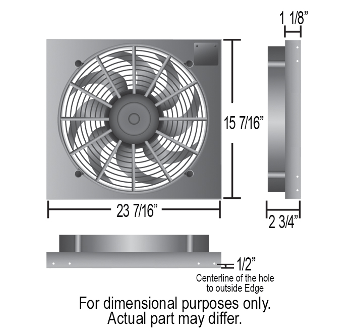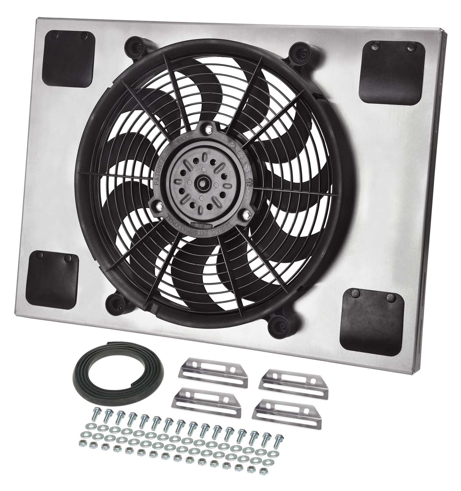 This High Output Single RAD Fan Powerpack is part of the HO Aluminum Shrouded Fans Series designed with popular applications in mind. This assembly measures 23 7/16" wide by 15 7/16" top to bottom and only 2 3/4" thick to offer a yet precision fit. The raw aluminum shroud gives the user the freedom to polish, anodize, paint, or simply leave it natural to create a truly custom look for an affordable price. The 14" high output two-speed fan is one of the best in our line-up offering 2100 CFM when on high to create the most airflow possible in a compact size.