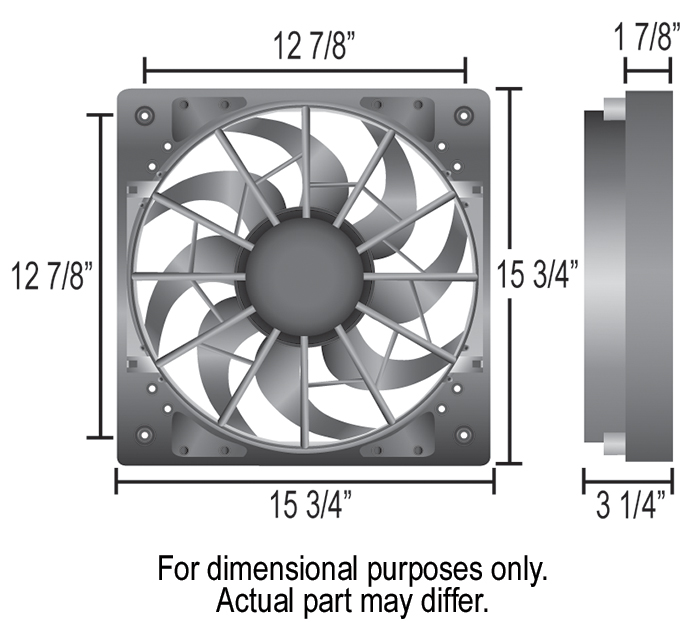 High Output Single 12'' RAD Puller Fan with Plastic Shroud - 15-3/4''W x 15-3/4''H x 3-1/4''D