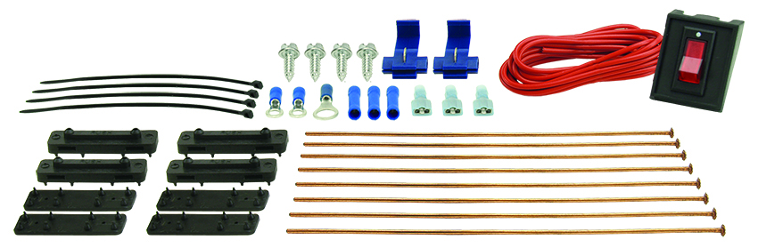 - Kit contains 8 metal rods with hardware, toggle switch, wire, zip ties, and wire connectors