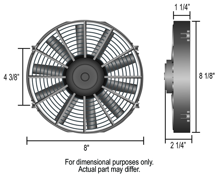 8" Dyno-Cool Straight Blade Electric Fan - 8"W x 8-1/8"H x 2-1/4"D