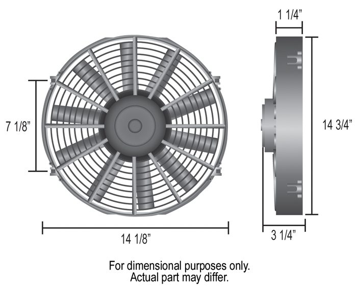 14" Dyno-Cool Straight Blade Electric Fan - 14-18"W x 14-3/4"H x 1-1/4"D
