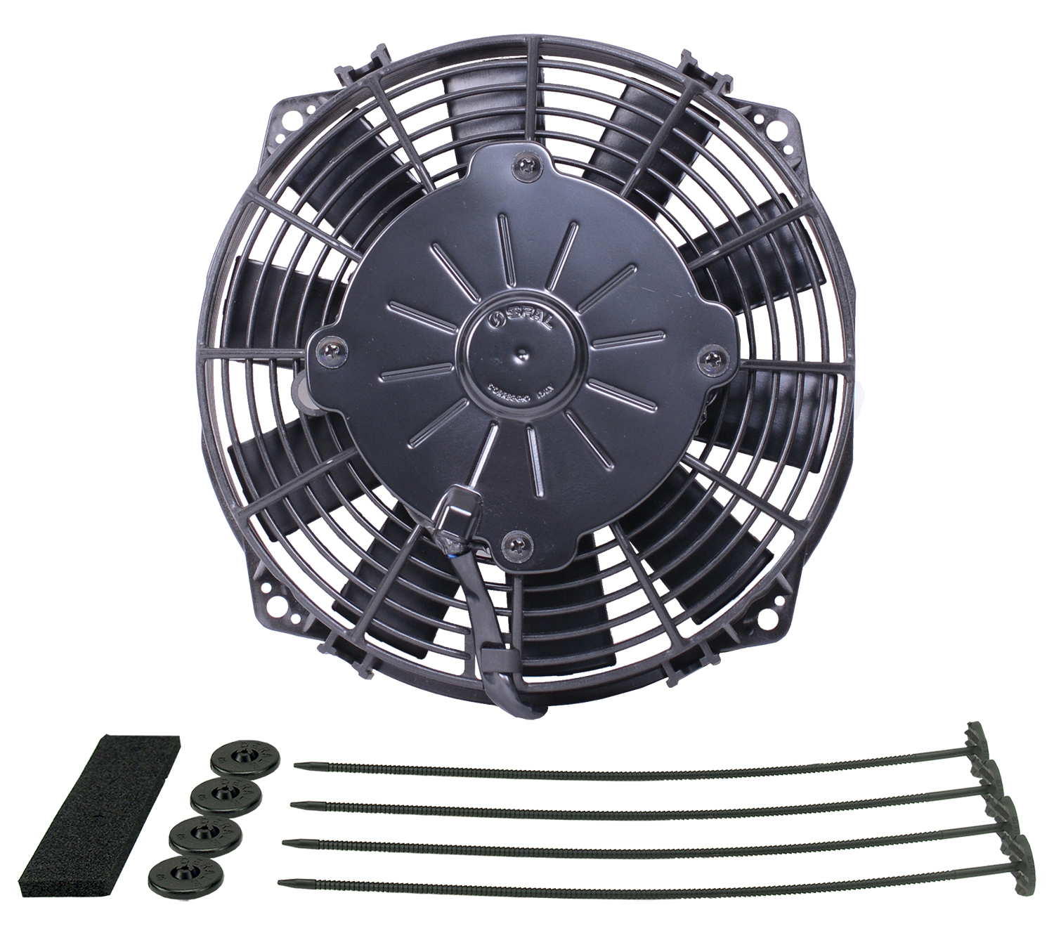 A 8" Diameter version of our high performance H.O. Extreme series of electric fans, this powerful unit uses 10 thin, straight blades to provide a low profile (only 2" at widest point) for limited space applications. Using a sealed IP68 certified waterproof & dustproof motor that lasts up to 3 times longer than normal electric fan motors, this puller fan is designed to provide maximum performance at high static pressure loads. Mounting kit and installation instructions included.