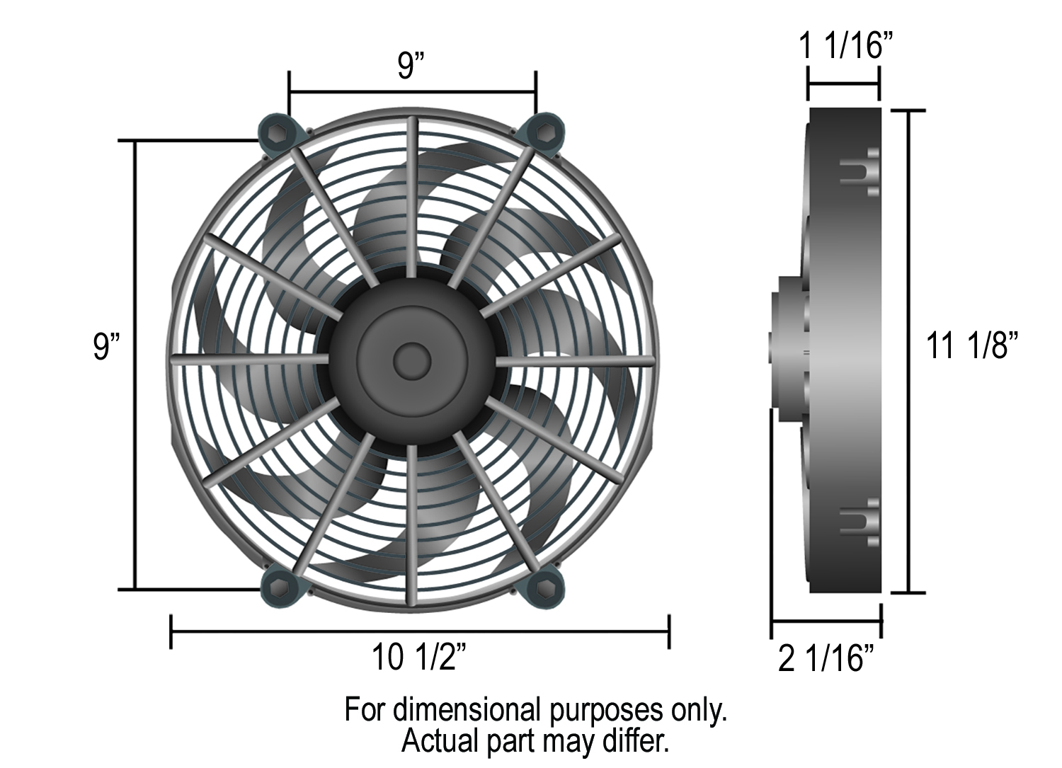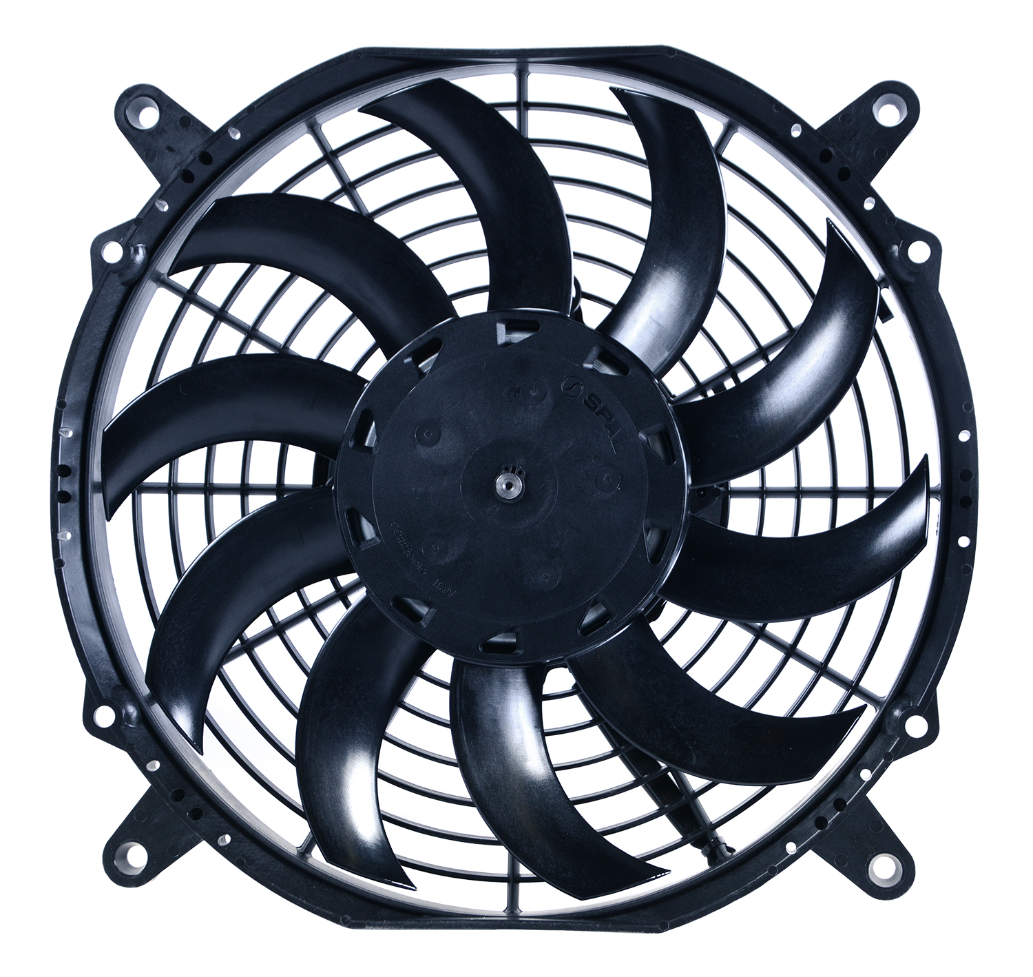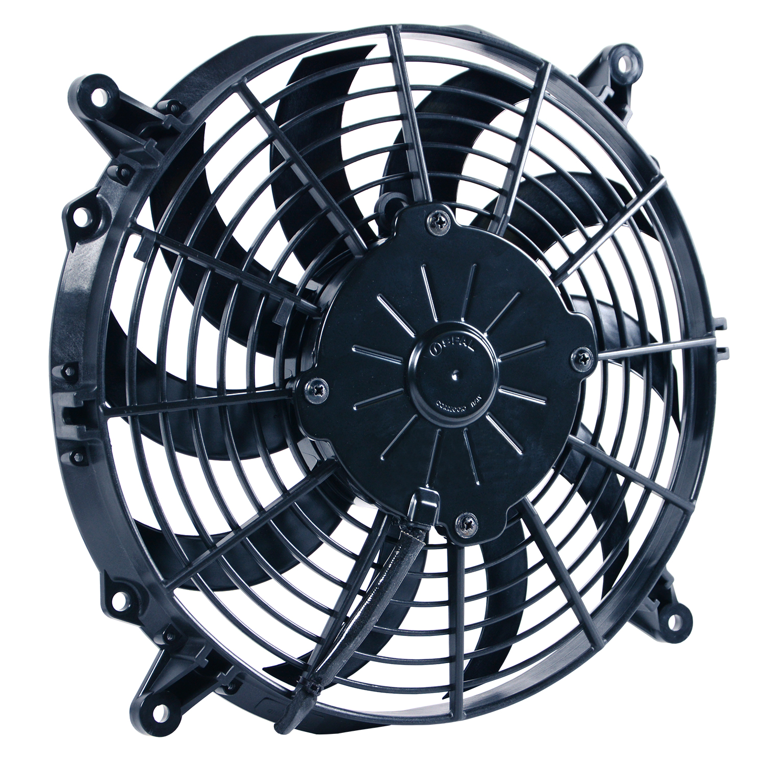 A 10" Diameter version of our high performance H.O. Extreme series of electric fans, this powerful unit uses 10 thin, curved blades to provide a low profile (only 2 1/16" at widest point) for limited space applications. Using a sealed IP68 certified waterproof & dustproof motor that lasts up to 3 times longer than normal electric fan motors, this puller fan is designed to provide maximum performance at high static pressure loads. Mounting kit and installation instructions included.