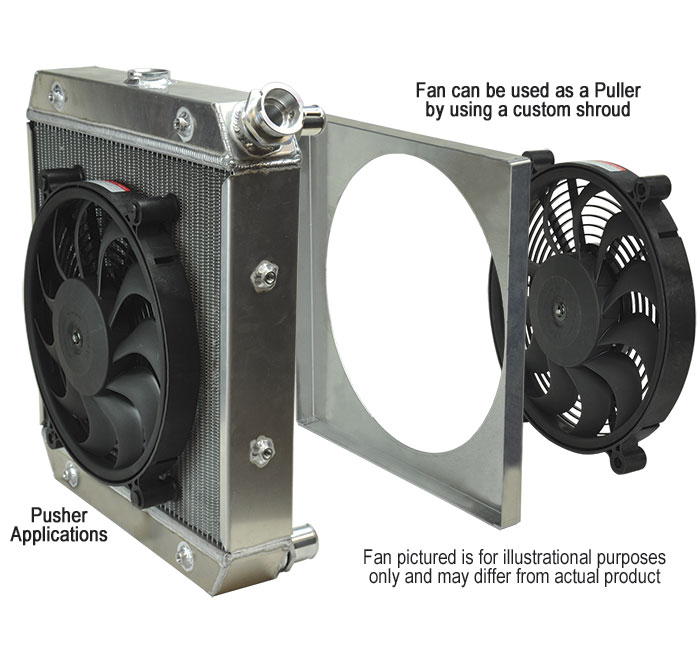 - Mounts as pusher (grill side). *Can be used in puller application when custom shroud is used