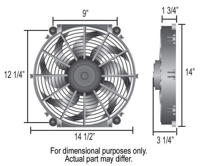 This extremely popular 14" reversible Tornado fan uses 8 skewed blades, producing a healthy 1350 CFM at 0 static pressure, drawing only 10.5 amps. Kit includes a high quality single stage fan controller with preset 180°F-on and 165°F-off temperature controls and includes both a push-in radiator probe and a 3/8" NPT brass water jacket probe, plus all necessary installation hardware. Made in the USA.