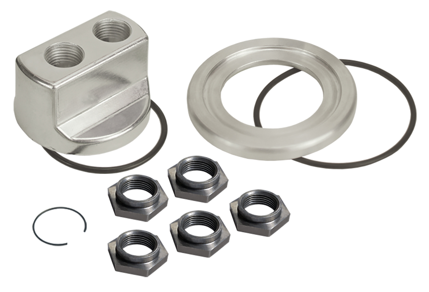 - Provides external oil lines for remote filter mounts and oil coolers