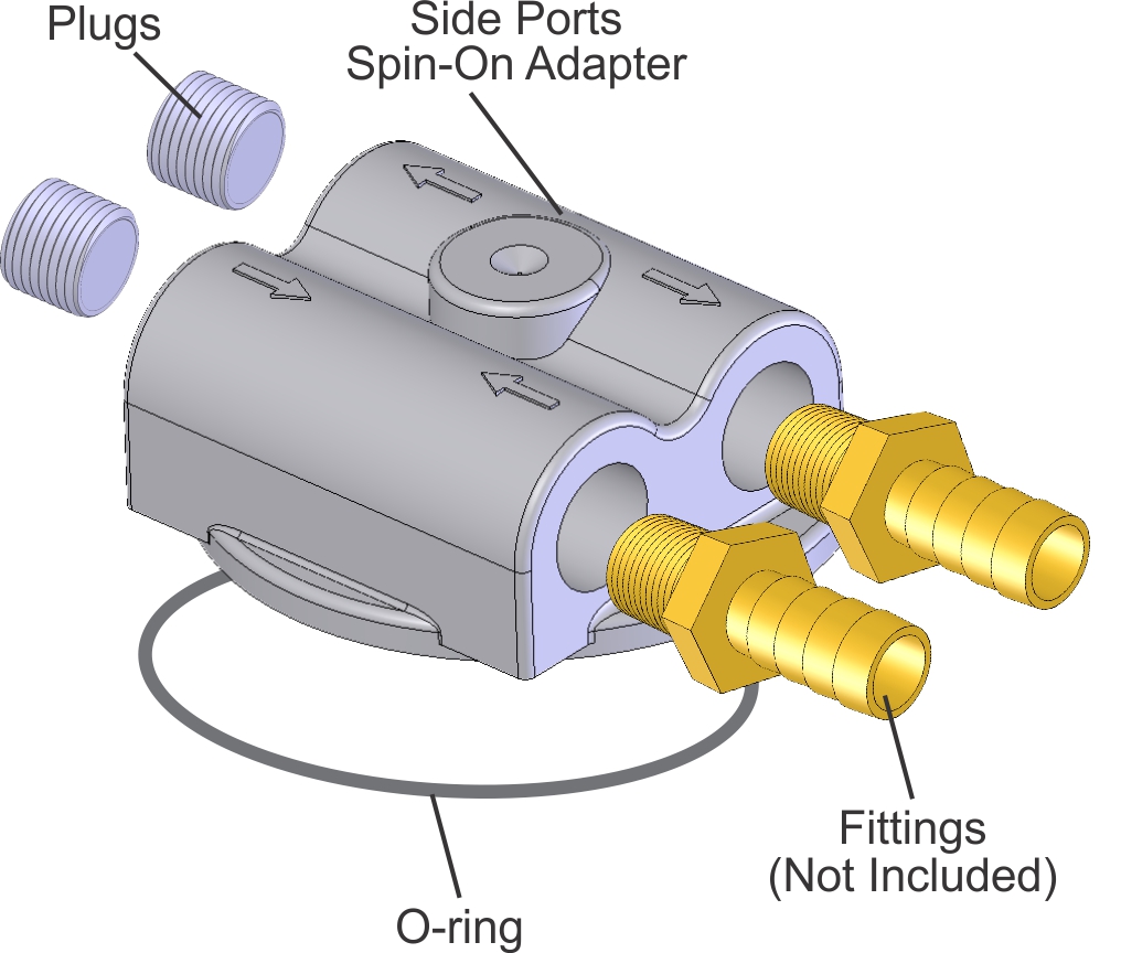 Dual Side Ports Spin-On Adapter with 1/2'' NPT Ports and 20 x 1.5mm Filter Thread