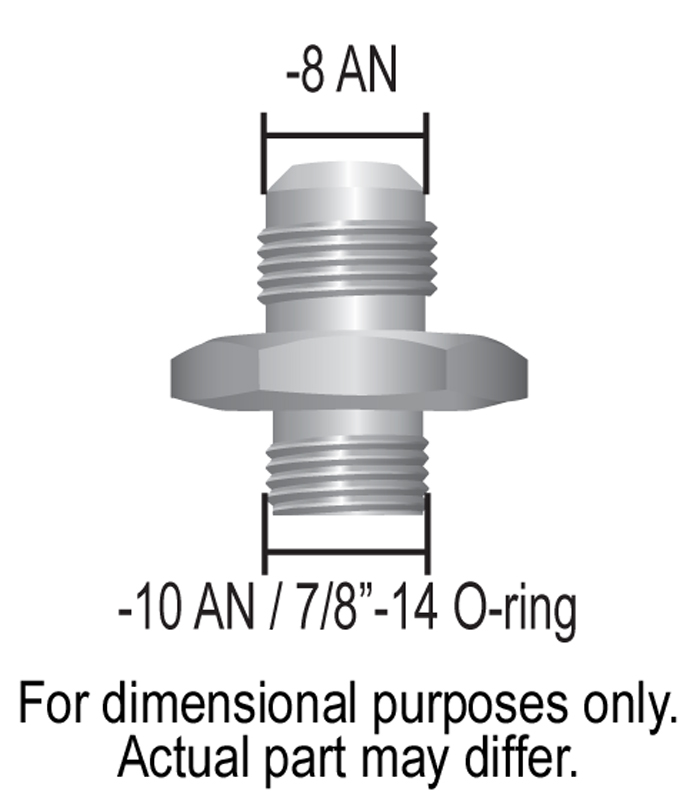 - Fitting size: -10AN o-ring male (7/8"-14) x -8AN male