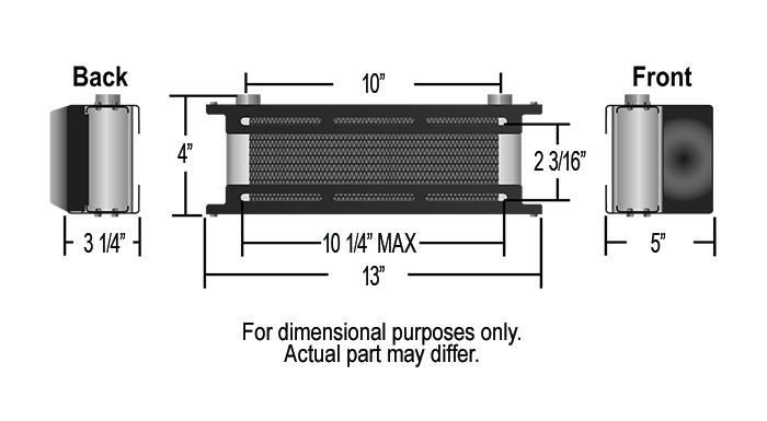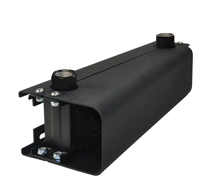 Derale Performance's Scoop Cooler is another industry exclusive, using Ram Air technology to force-feed air to their highly-efficient 10-Row Stack Plate Cooler. As expected from the Derale team, it can be used for a wide variety of cooling needs from engine and transmission to power-steering and fuel. Featuring a unique mounting bracket that sandwiches the cooler and the intake scoop, there are a wide variety of mounting options, all of which are designed to provide a clean, attractive and highly efficient cooler. Do not be fooled by its compact size; Derale's Scoop Cooler is a heavy-duty cooler in every sense of the word, with integrated turbulators running through each row. It's all-aluminum design is lightweight while the furnace-brazed construction is tested to withstand pressures up to 300 p.s.i., and GUARANTEED to 250 p.s.i. Cooler equipped with 7/8"-14 (-10AN) inlet/outlets. -6 AN, -8AN and -10AN fittings available, but sold separately.
