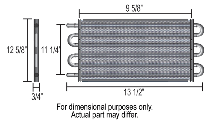 This Tube & Fin cooler features 1/2" copper tubing expanded into aluminum cooling fins. It is built with -6AN inlets and can be used as a transmission cooler, power steering or fuel cooler with equal efficiency. No mounting hardware included.
