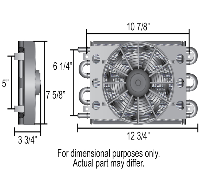 With an efficient copper tube/aluminum cooling fin cooler being supplied air by a 7" Tornado electric fan, this value priced remote cooler comes with 11/32" hose barb inlets and is recommended for light duty towing and hauling or when pulling consistent grades. A great addition to compact cars and smaller SUVs that will add years to the life of a transmission at a reasonable price. Also recommended for power steering and fuel cooling. No mounting hardware included. Made in USA.