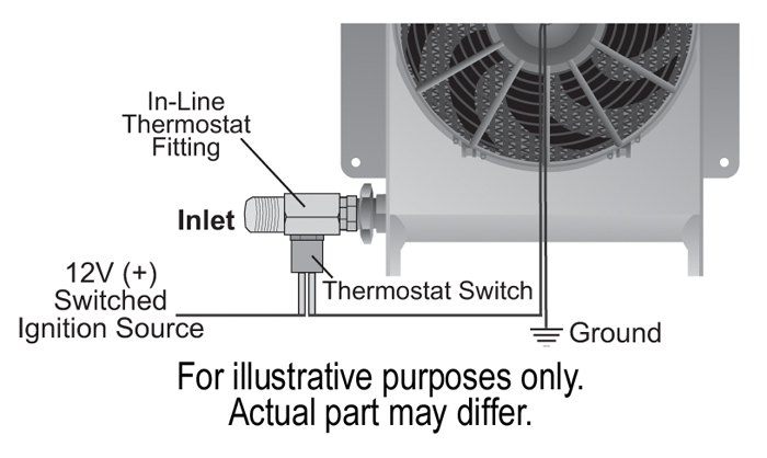 - Engine cooler kit includes fan mounted cooler, universal thermostatic sandwich adapter, 13/16-16", 3/4-16", 18mm, 20mm, & 22mm sleeve nuts, two -8AN fittings, four 1/2" hose barb fittings, 180°F In-line thermostat,10 ft. OEM spec hose & hardware