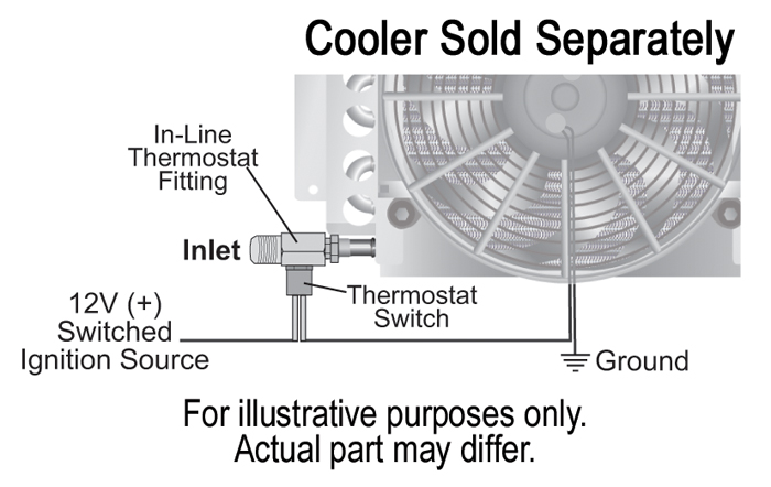 This universal installation kit is designed for engine oil cooler applications only and comes complete with most everything you will need to install. Although it is designed for Derale's popular remote mount coolers, it will also work with competitor models as well. Included is an 180°F in-line thermostat for activating the electric fan.
